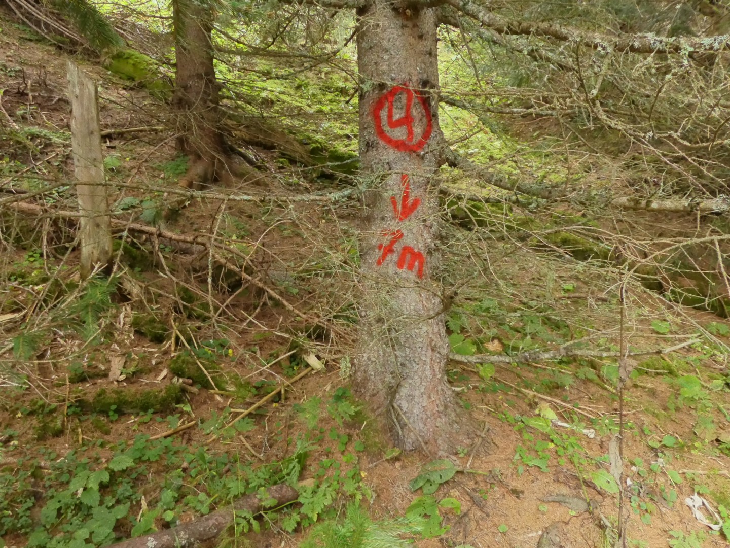 • Beobachtung der Auswirkung von Moderholz (hohe Stöcke und liegendes Stamm/Moderholz) und Kleinstrukturen (Wurzelstöcke von geworfenen Bäumen) auf die Verjüngung