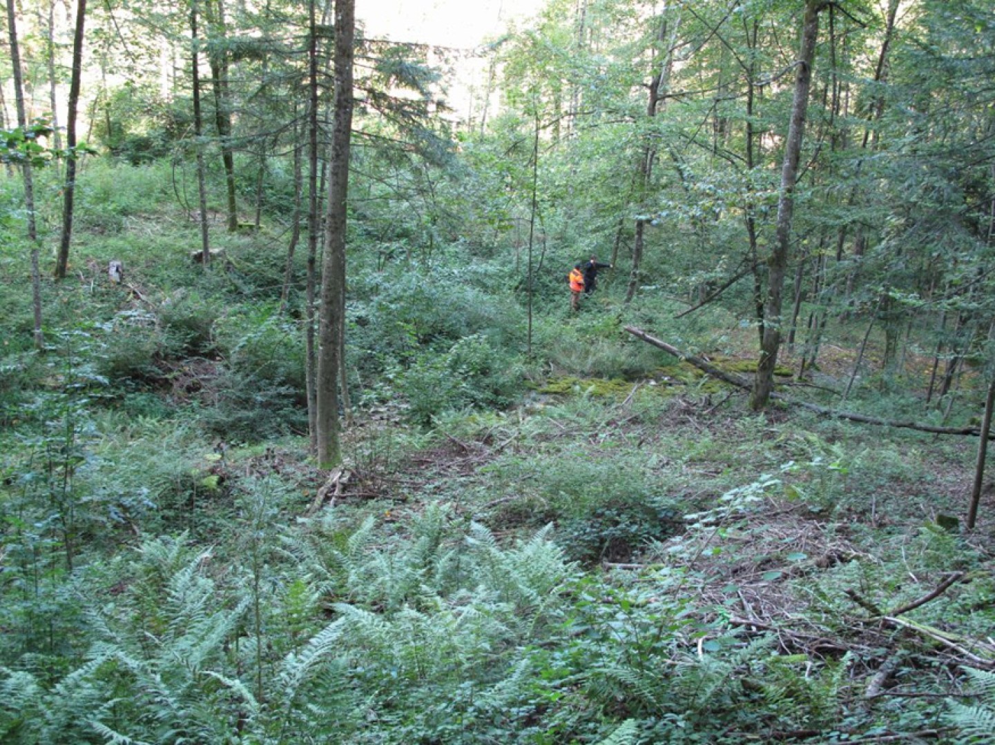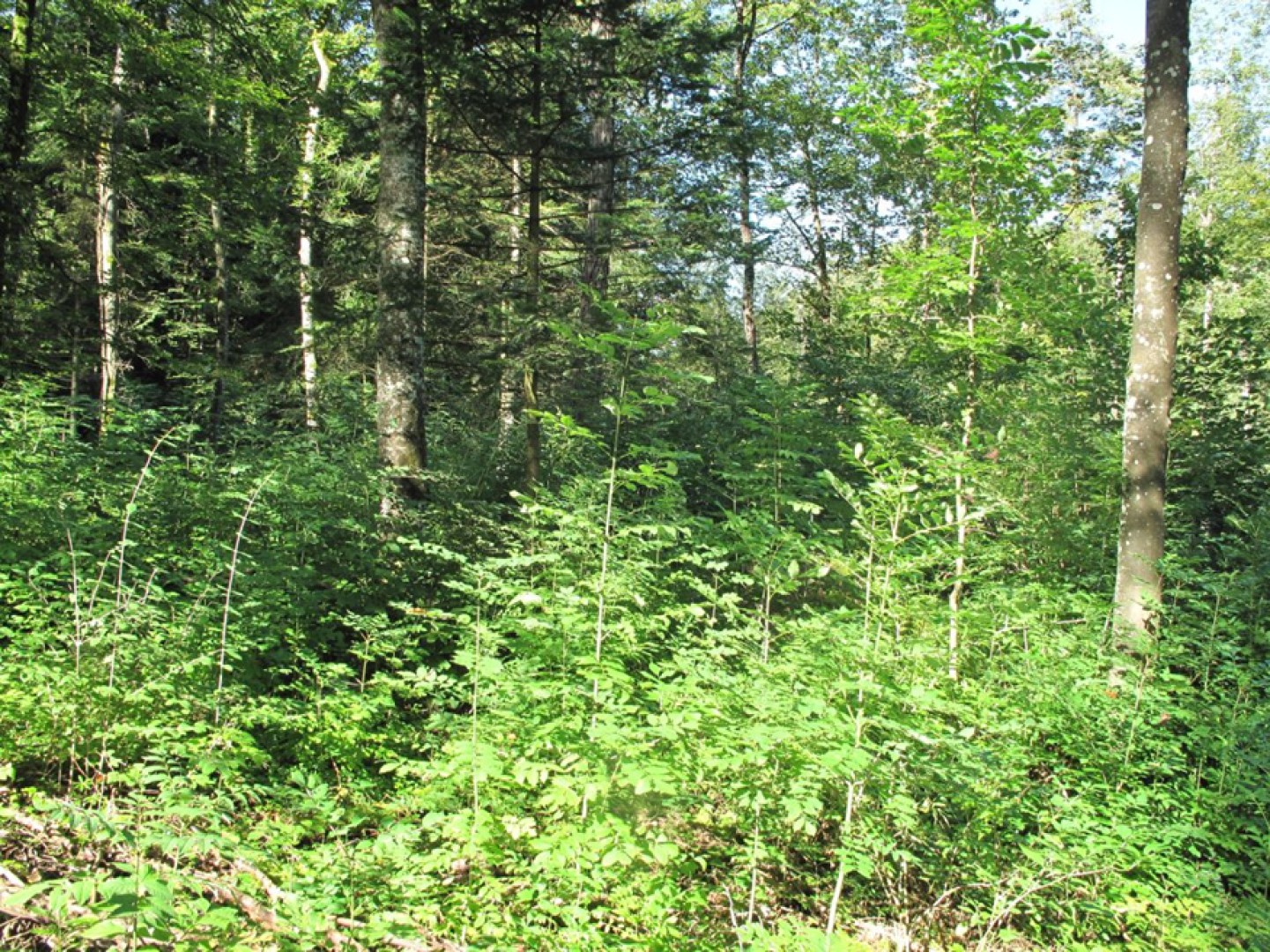 Le peuplement est composé d'un mélange d'essences bien diversifié. Globalement, suite aux dernières exploitations (après l'ouragan Andrea en 2012 et une coupe en 2021), on a obtenu de bon résultats autant sur les aspects liés au changement climatique (variété d'essence dans le peuplement et le rajeunissement) que sur les aspects liés au danger naturel (bonne stabilité, car les frênes malade et les arbres instables ont été retiré).
