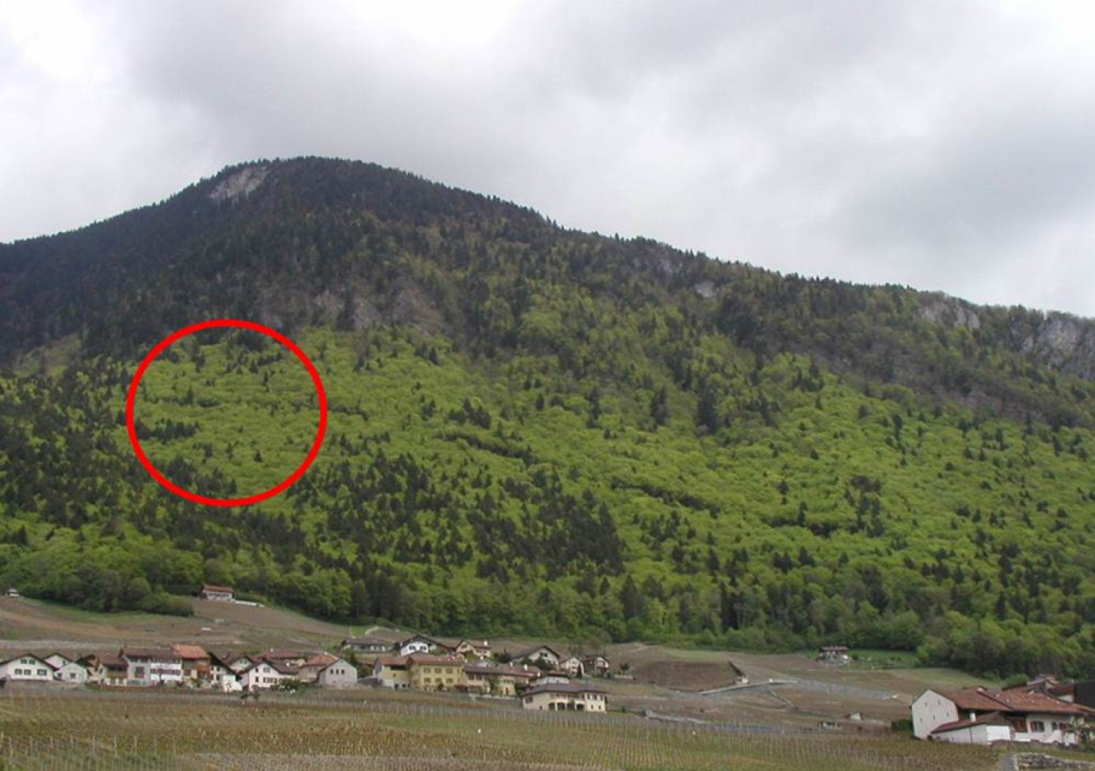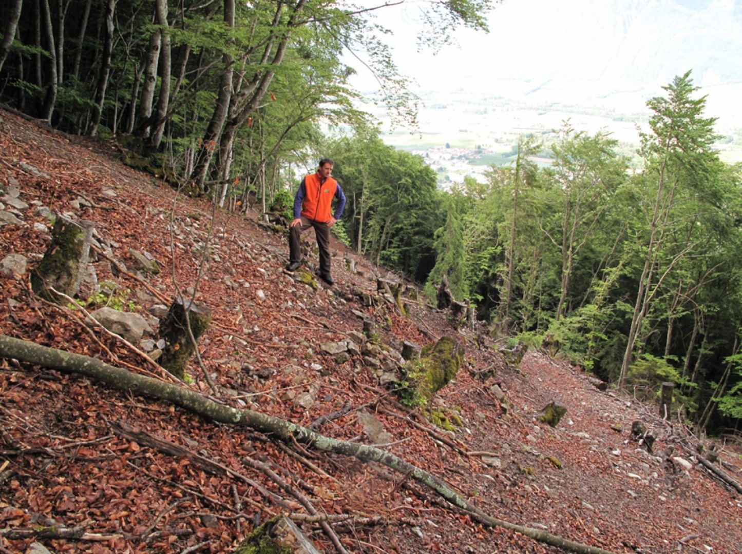 Il n'y a pas assez de tige dans les petites classes de diamètre pour protéger efficacement contre les chutes de pierres. Néanmoins, la surface terrière est suffisante.