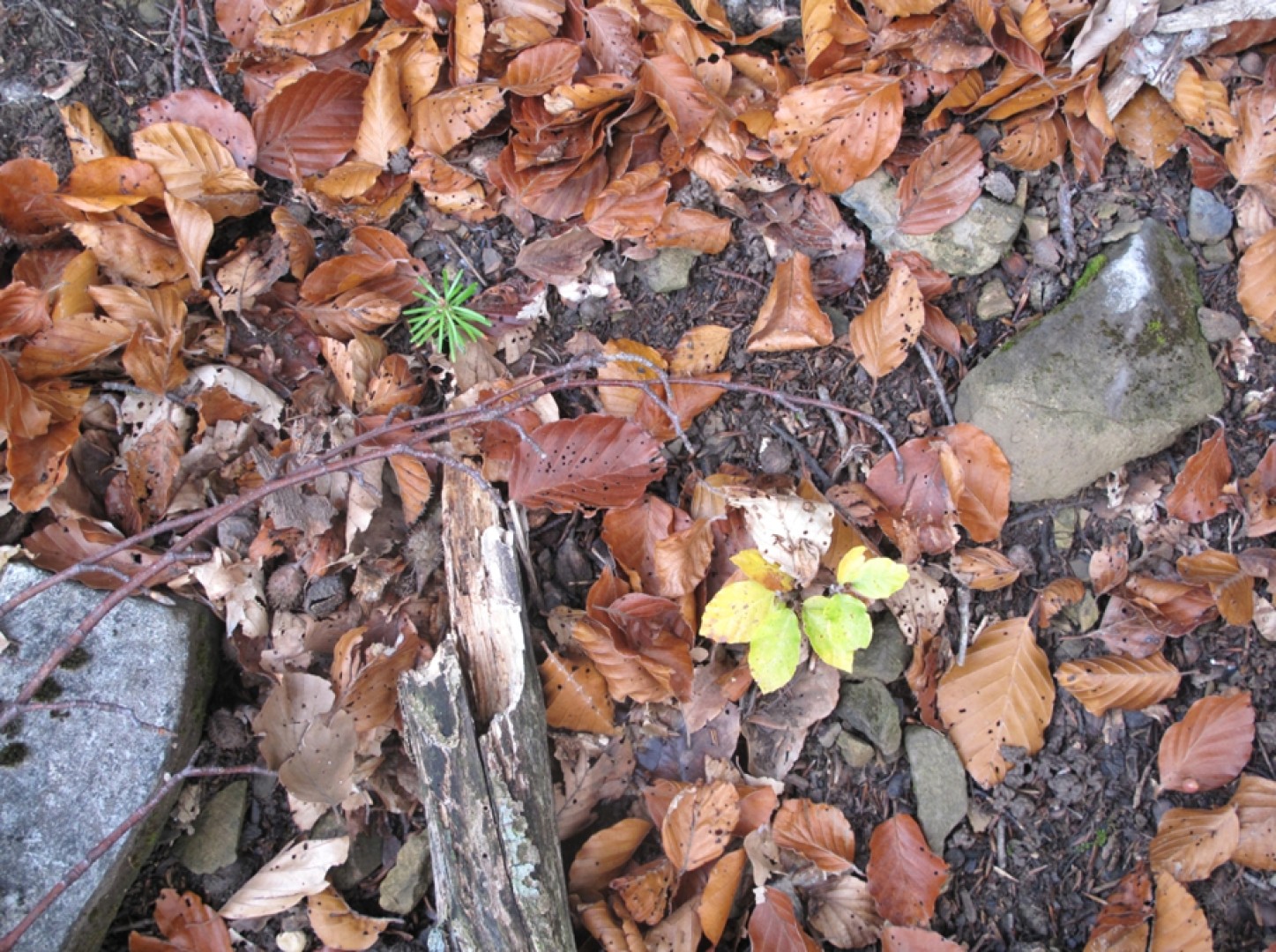 La part de hêtre a encore augmenté, tandis que celle des résineux a diminué fortement (bcp de secs sur pied) Une bonne diversité de feuillus accompagne néanmoins le hêtre (orme, alisier, ér. à f. obier, paulownia)
