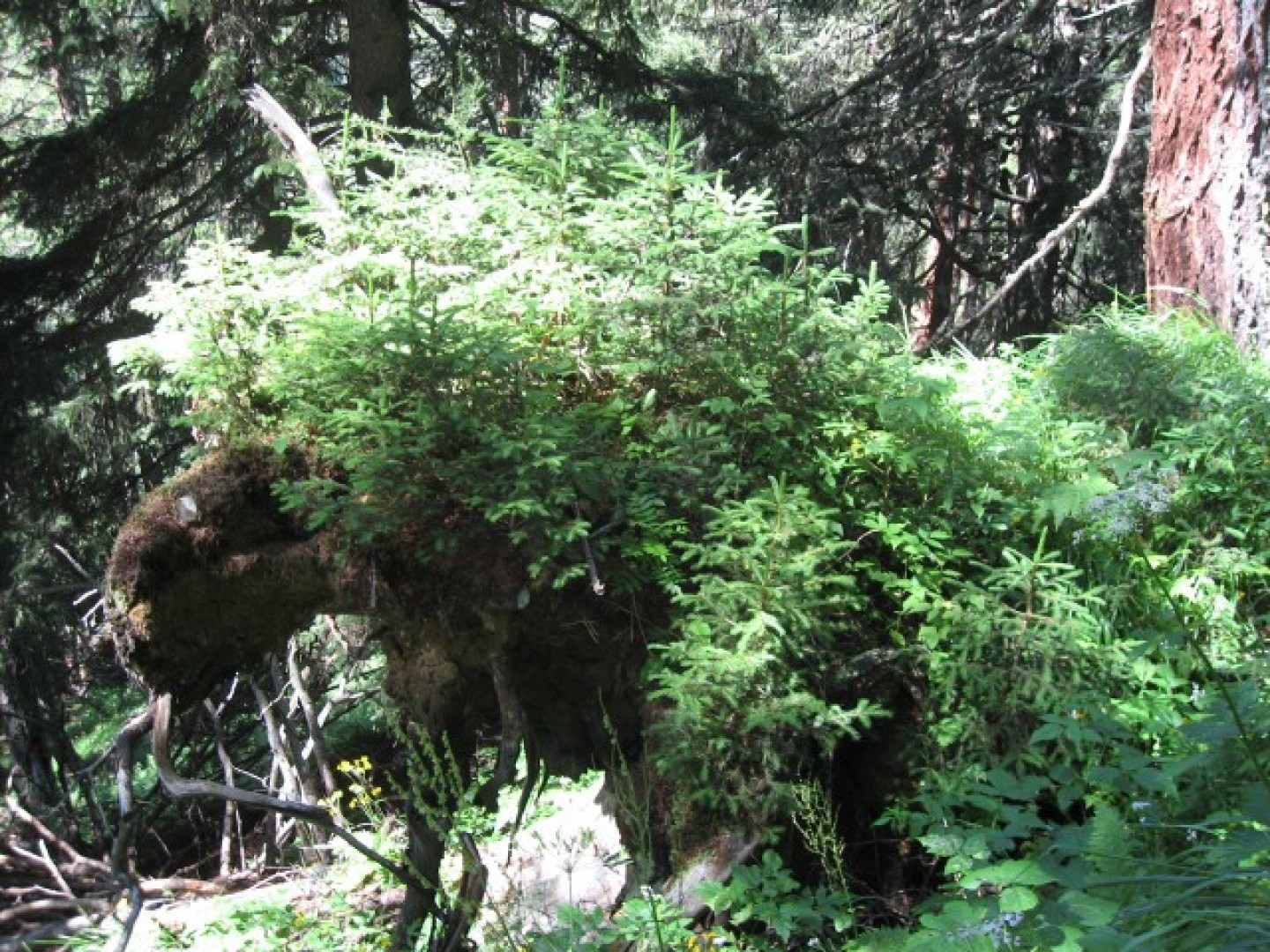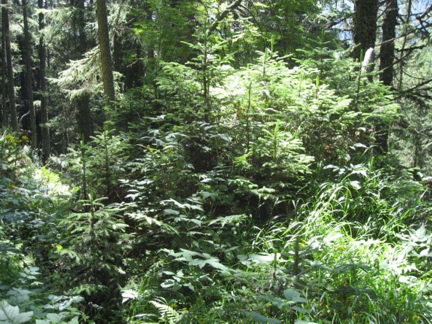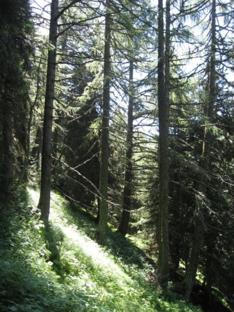 Verjüngung eines lärchenreichen hochmontanen Fi-Waldes im Lawinenanrissgebiet.