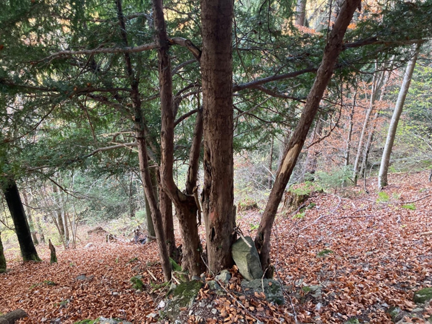Peu de troncs et de souches intercepteurs, bcp de troche de noisetiers efficace contre les chutes de pierres