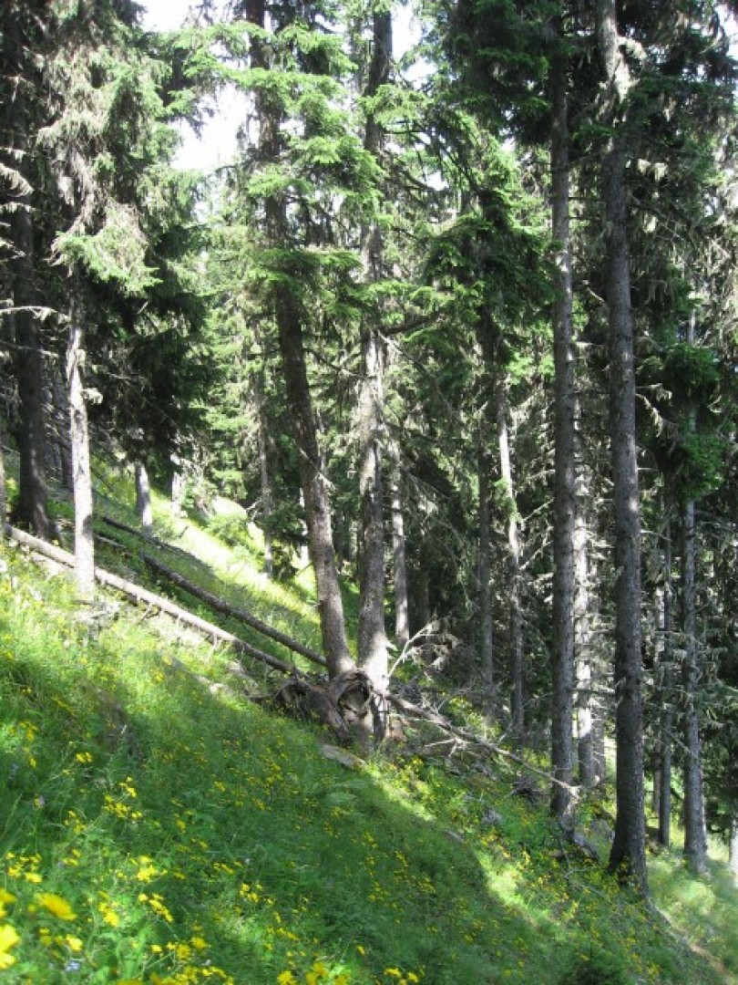 Verjüngung in südexponiertem subalpinen Fichtenwald