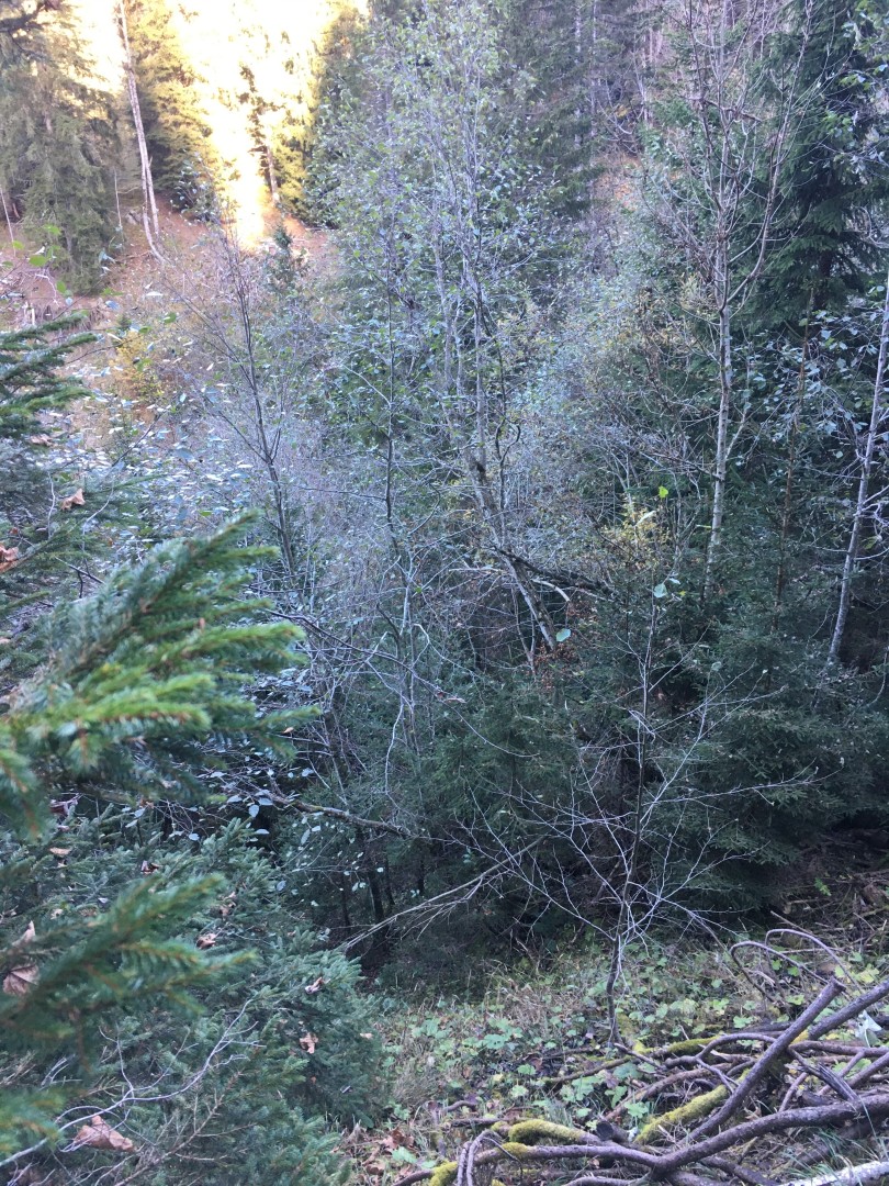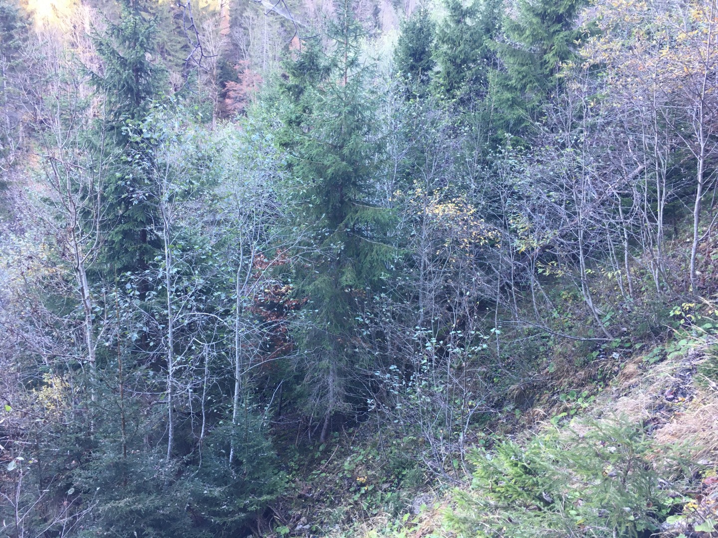 Eindruck insgesamt gut, allerdings infolge Wilddruck Baumartenvielfalt nicht so gut wie gewünscht. Bergahorn und Tanne fehlen, die Buche kommt langsam auf, Weisserle und Fichte dominieren den Bestand. Die Fichtenverjüngung braucht viel Zeit um dem Äser zu entwachsen und dann an Wuchsgeschwindigkeit zuzulegen.