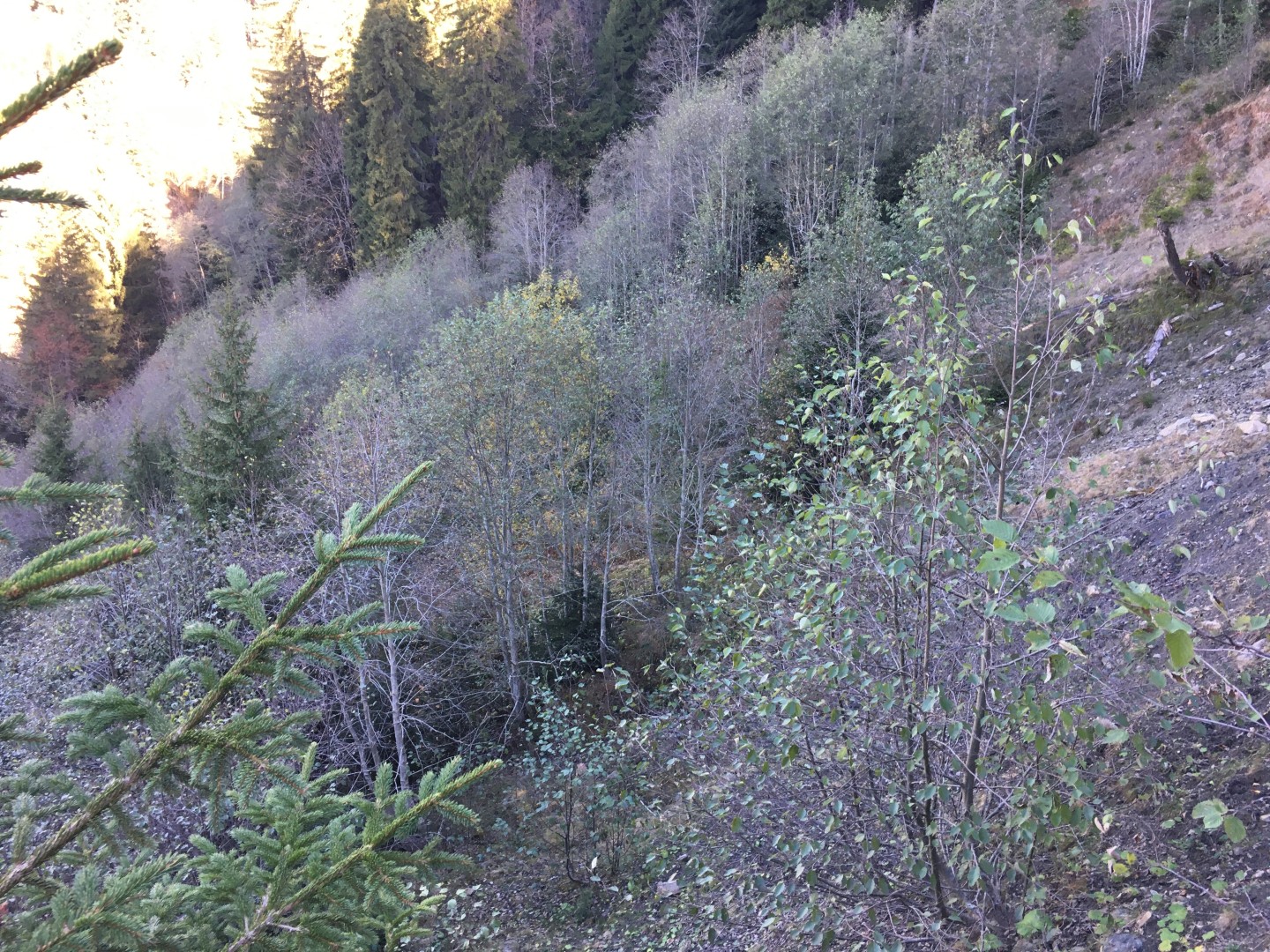Als "Nullfläche" ist die zügige natürliche Bewaldung des Rutschkegels mit Weisserle und Fichte positiv einzuschätzen. Die natürlichen Prozesse auf der Fläche sind begrüssenswert.