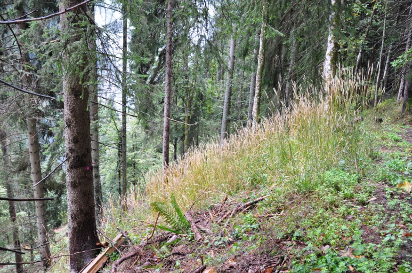 Beaucoup de concurrence herbacée dans les trouées et premier pionnier de sureau ou saule. Quelques sorbiers, mais dans l'immédiat pas beaucoup de rajeunissement. Les sapins et mélèzes dans les enclos se portent bien.