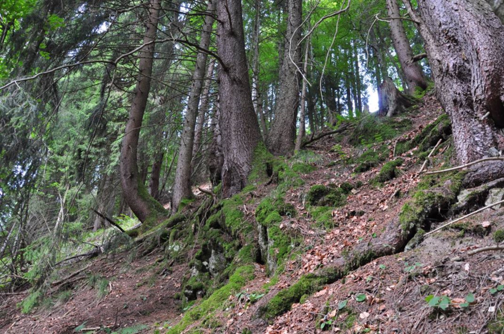 Il s'agissait essentiellement de parcelles privées. Avec l'augmentation de la circulation sur la route cantonale à l'aval et la chute des prix des bois, ces forêts n'avaient pratiquement plus été exploitées depuis des décennies. Des chablis de gros résineux (essentiellement épicéas) ont déstabilisés des blocs se trouvant sur les affleurements rocheux. Ces blocs et des arbres ont traversés la route. Dès 2004, des travaux sylvicoles sont devenus nécessaires (enlever les arbres les plus dangereux et introduire le rajeunissement) et des travaux de stabilisation de rocher et la construction d'ouvrages de protection contre les chutes de pierre ont été planifiés.