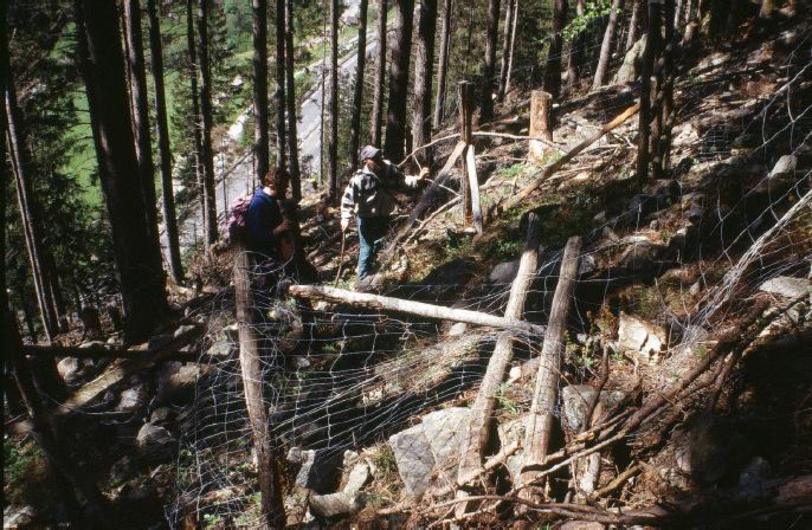 Holzschlag wurde im Winter 99/00 ausgeführt. Weiserfläche 2004 zusammen mit der WSL eingerichtet. Vereinzelt geringer Steinschlag aus den darüber liegenden Felspartien. Auf dem Boden finden häufig oberflächliche Bewegungen statt (Geröll, Steinschlag). Wo der Bestand lückig ist, begrünt sich der Waldboden mit üppiger Schlagflora (Farn, Reitgras, Himbeere, roter Holunder). Partiell stellt sich an solchen Stellen "Vorwald" mit Birken-Aufwuchs ein. Der Keimlingsaufwuchs ist (noch) sehr spärlich vorhanden. Der Kontrollzaun muss nicht mehr unterhalten und kann abgebrochen werden, da er keine Wirkung zeigt.