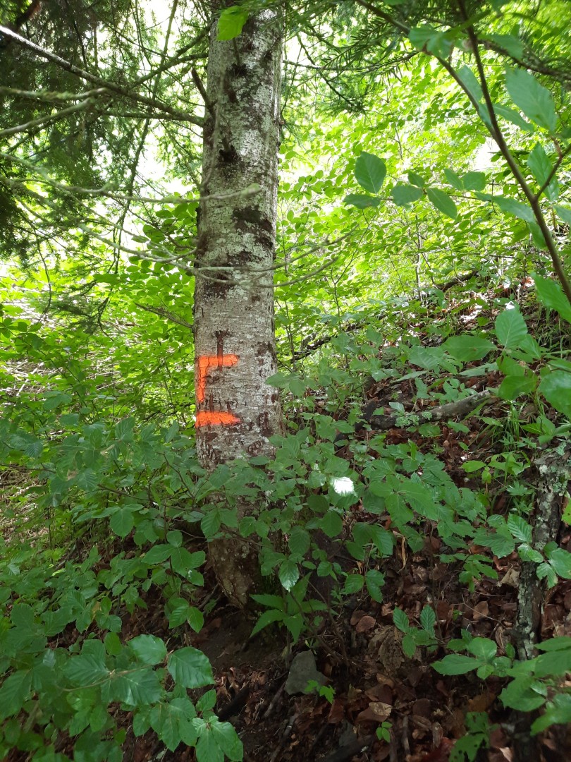 Une grande trouée due à une tempête de Foehn et une autre plus ancienne. Degré de couverture de 10-20%, ce qui n'est pas assez pour protéger des avalanche. Cependant, les bostrychés ont été laissé au sol pour barrer la neige et le terrain bénéficie d'une bonne rugosité avec la présence de souches hautes.
