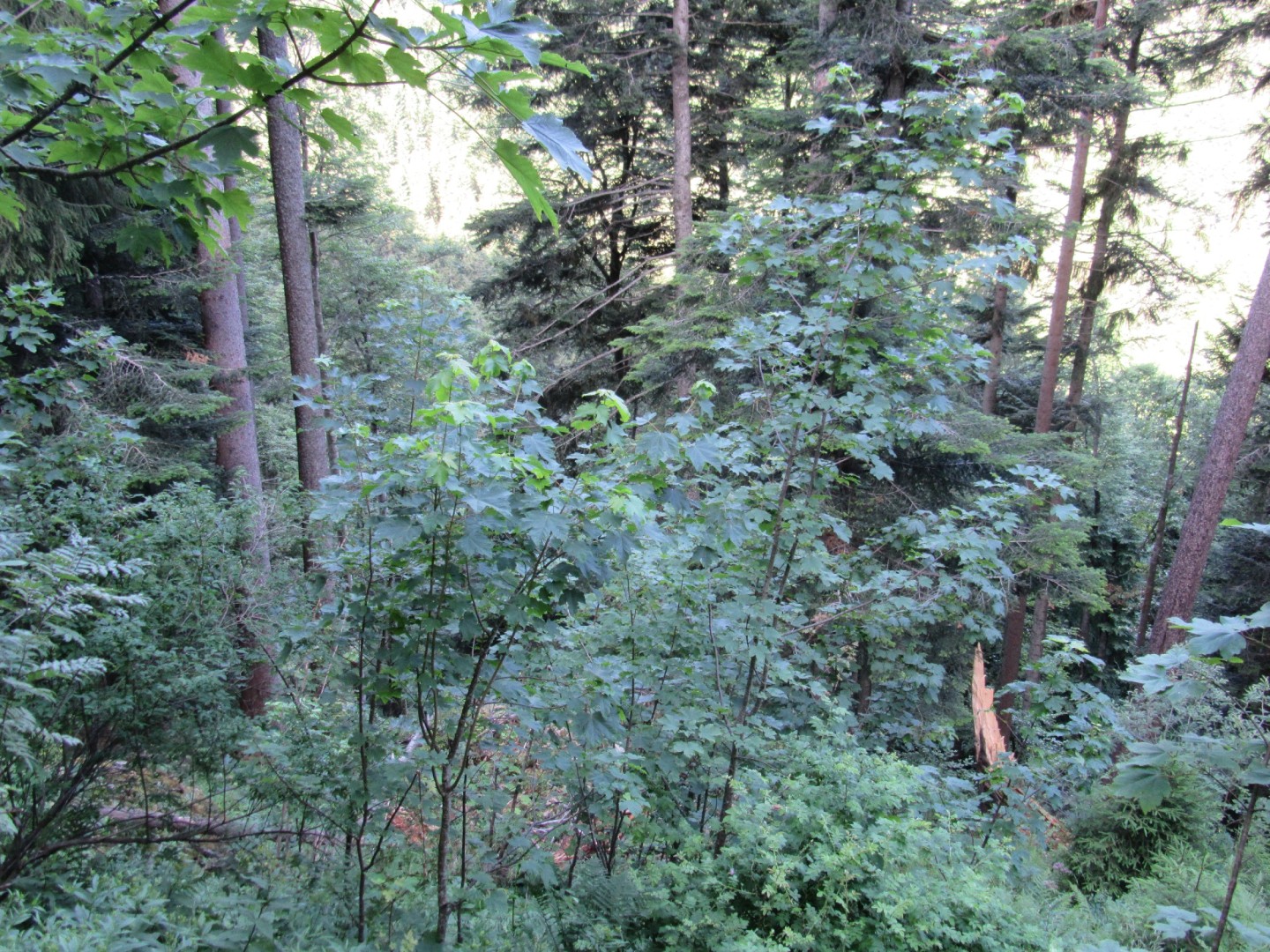 Mischung Verjüngung Klimagerecht; Buche, Bergahorn bereits jetzt vorhanden, aber Nordseite wo Klimawandel verlangsamt spürbar.