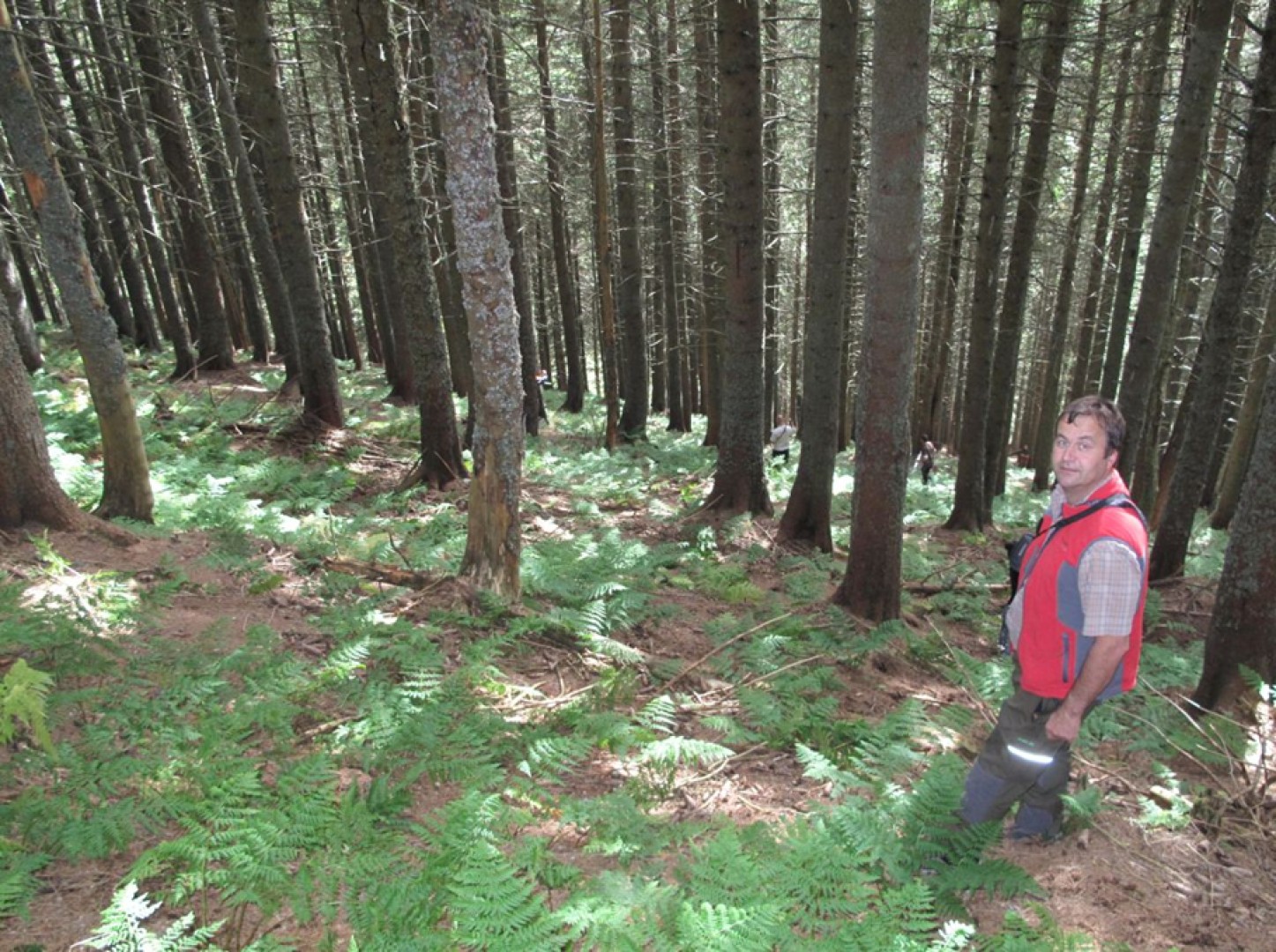 2011 : Coupe de mise en lumière. Bois sortis en entier à l'hélico. Donc peu de bois au sol même si quelques troncs ont été laissés. Souches coupées à mi-hauteur. Pas de problème de bostryche après l'intervention ce qui est bien. Les trouées n'ont pas été ragrandies. (Ce n'est pas le cas sur l'ensemble du massif.)