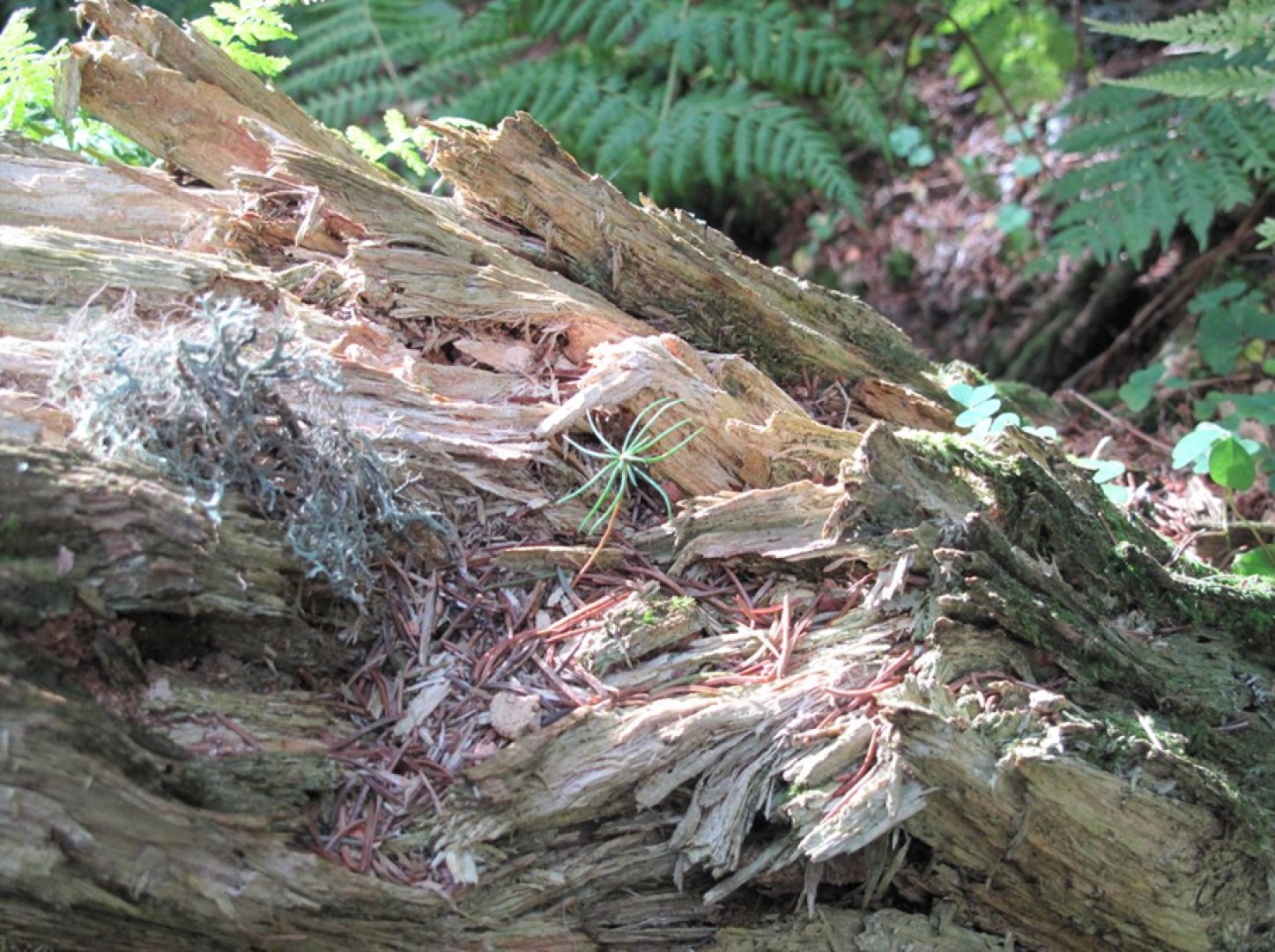 Présence de nombreux semis autour des souches et près du bois en décomposition, attestant de la bonne venue de la régénération.