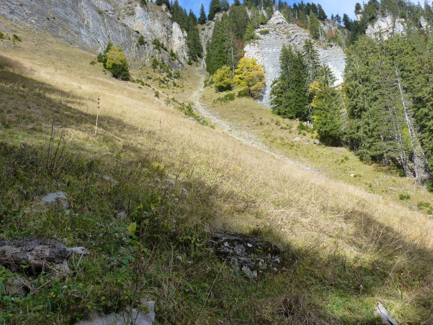 Ohne Gleitschneeschutz kommt die Verjüngung kaum auf. Denn die grossen Schneemengen am Südhang Schyberwängli sind verbunden mit starken Schneerutschungen und verunmöglichen damit das Aufkommen der Verjüngung.