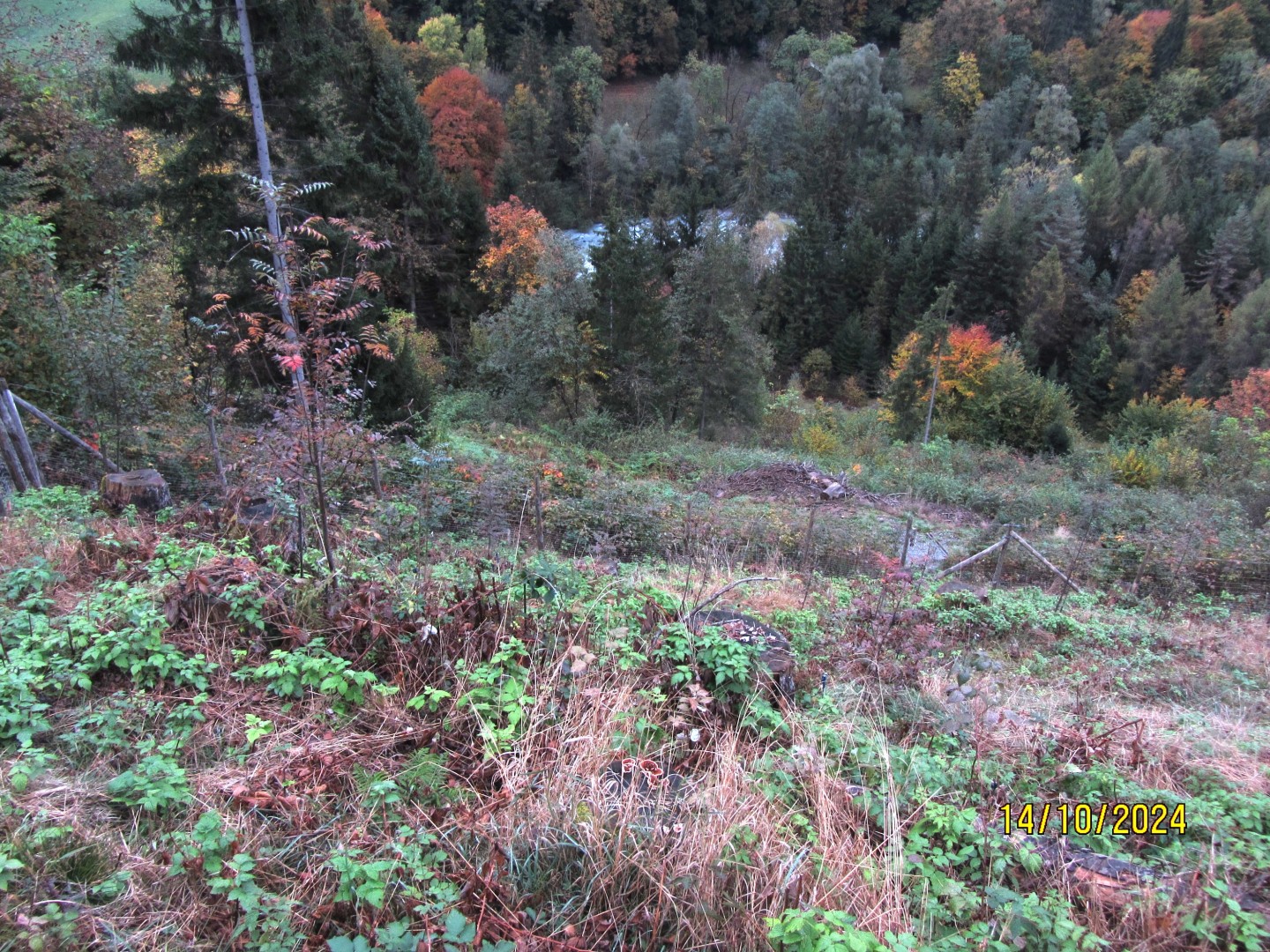 Ausserhalb der Zäune sind die Schürfflächen grossteils von Brommbeeren und Gras überwuchert. Es kommen erst spärlich einzelne Lichtbaumarten auf welche die Brommbeeren überragen. Die Fichten wildlinge um die Einzelschütze sind nur noch vereinzelt auffindbar, entweder überwucherto der nichtmehr vorhanden. In den Einzelschützen kommen die Douglasien gut auf, werden jährlich Ausgetrichtert.
