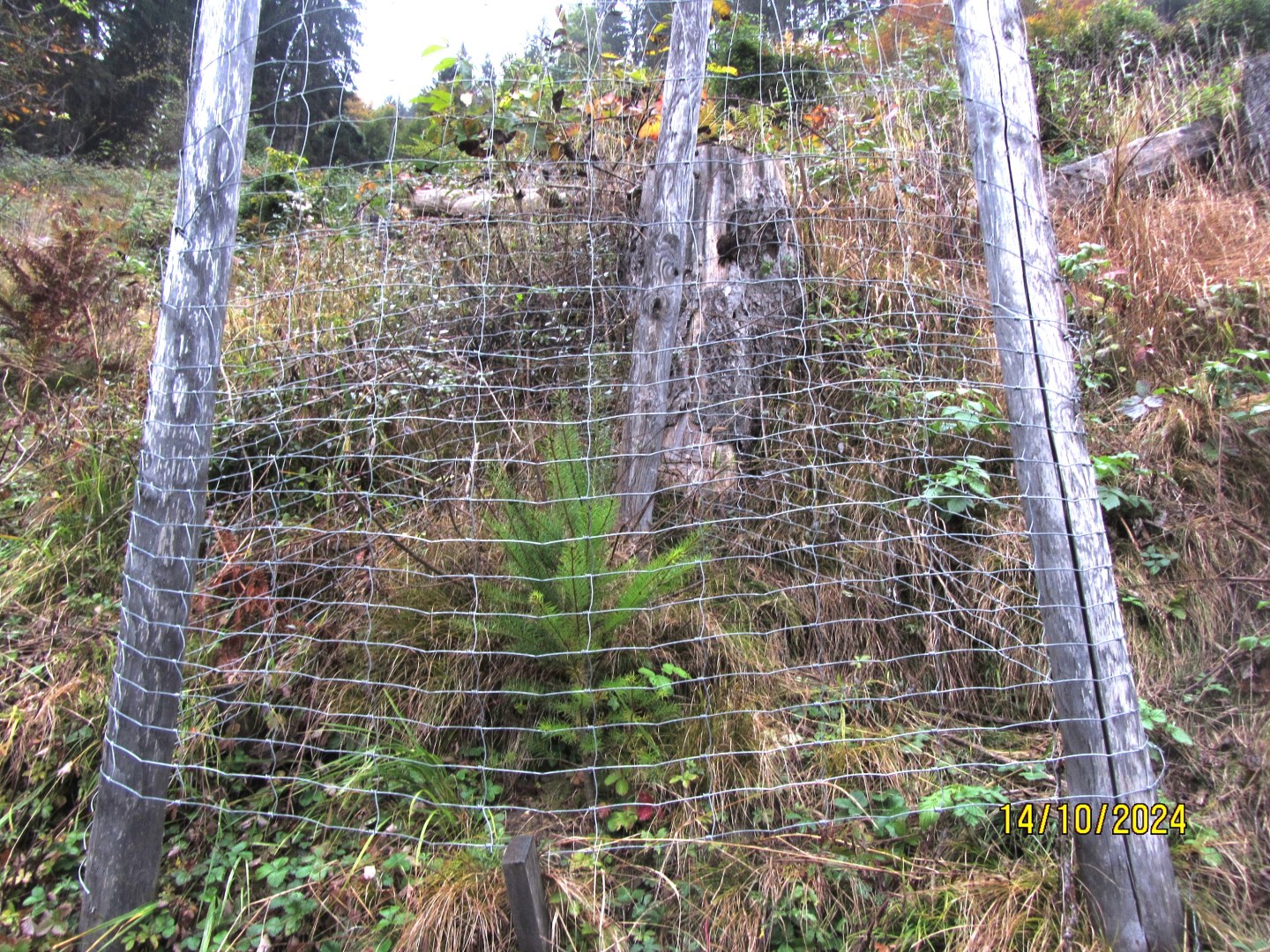 In den Wildschutzzäunen sind die mehrheit der gepflanzten Baumarten Vital. Auch hier ist die Konkurenzvegetation stark. Jedoch wird jährlich gemäht. Im südlichen Zaun wurden zwei Eichen aus Naturverjüngung aufgefunden.