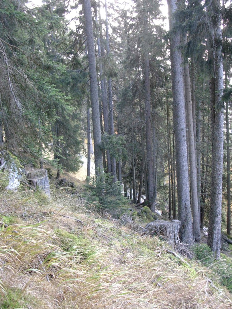 Um zukünftig auch die Lärche fördern zu können, empfiehlt es sich nach einem Holzschlag den Schlagabraum abzuräumen und Samenbäume stehen zu lassen. Wichtig erscheint, dass die Öffnungen gross genug aber nicht zu gross sind. Wei-teres könnte man versuchen die Länge der Traufbereiche zu erhöhen. Denn sonst besteht die Gefahr, dass das Wollreitgras und die Himbeeren in starker Vegetationskonkurrenz mit den gewünschten Baumarten tritt. Zudem könnte man die Öffnungen nicht nur gegen die Abendsonne, sondern auch zur Morgensonne hin, an-zeichnen. Erstaunlicherweise neigen nur Lärchen zu Hänger, welche aber stehen gelassen werden sollten, um so Samenbäume zu generieren. Wo es sinnvoll ist können Bodenschürfungen angelegt werden um die Ansamung der Lärche zu fördern.