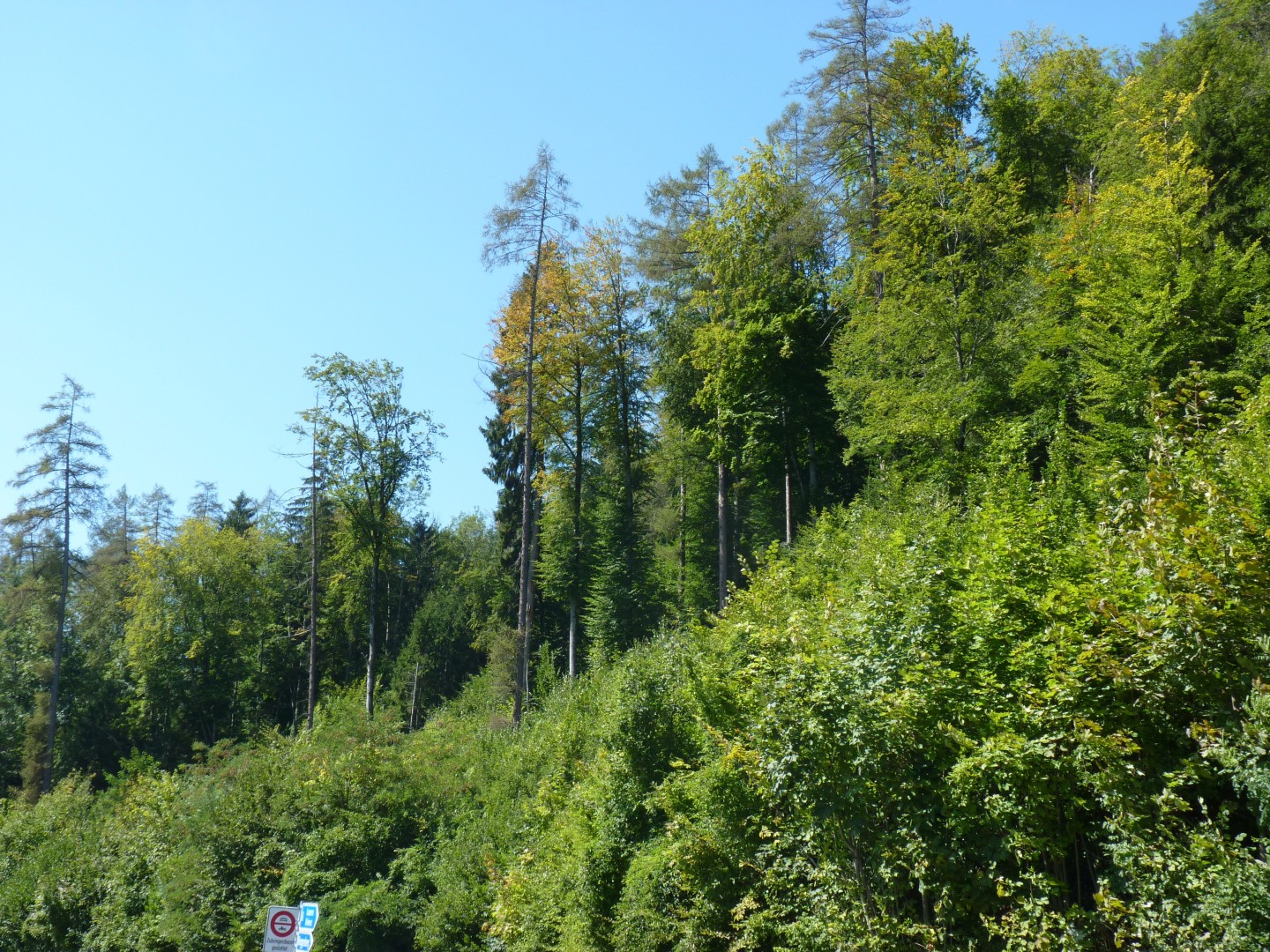 Vor ca. 30 Jahren jetziger Dickungsstreifen ob Strasse durch Nassschneefall verjüngt.