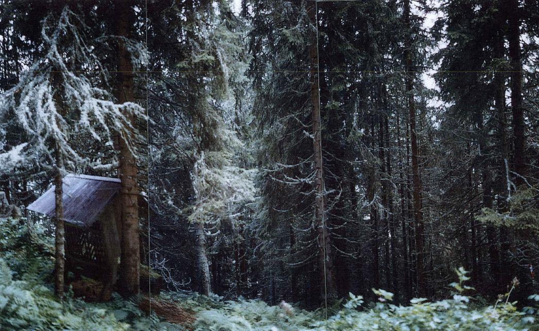 Vereinzelte Fi-Ansamung oberhalb o. Weg auf Moos und im geschlossenen wald