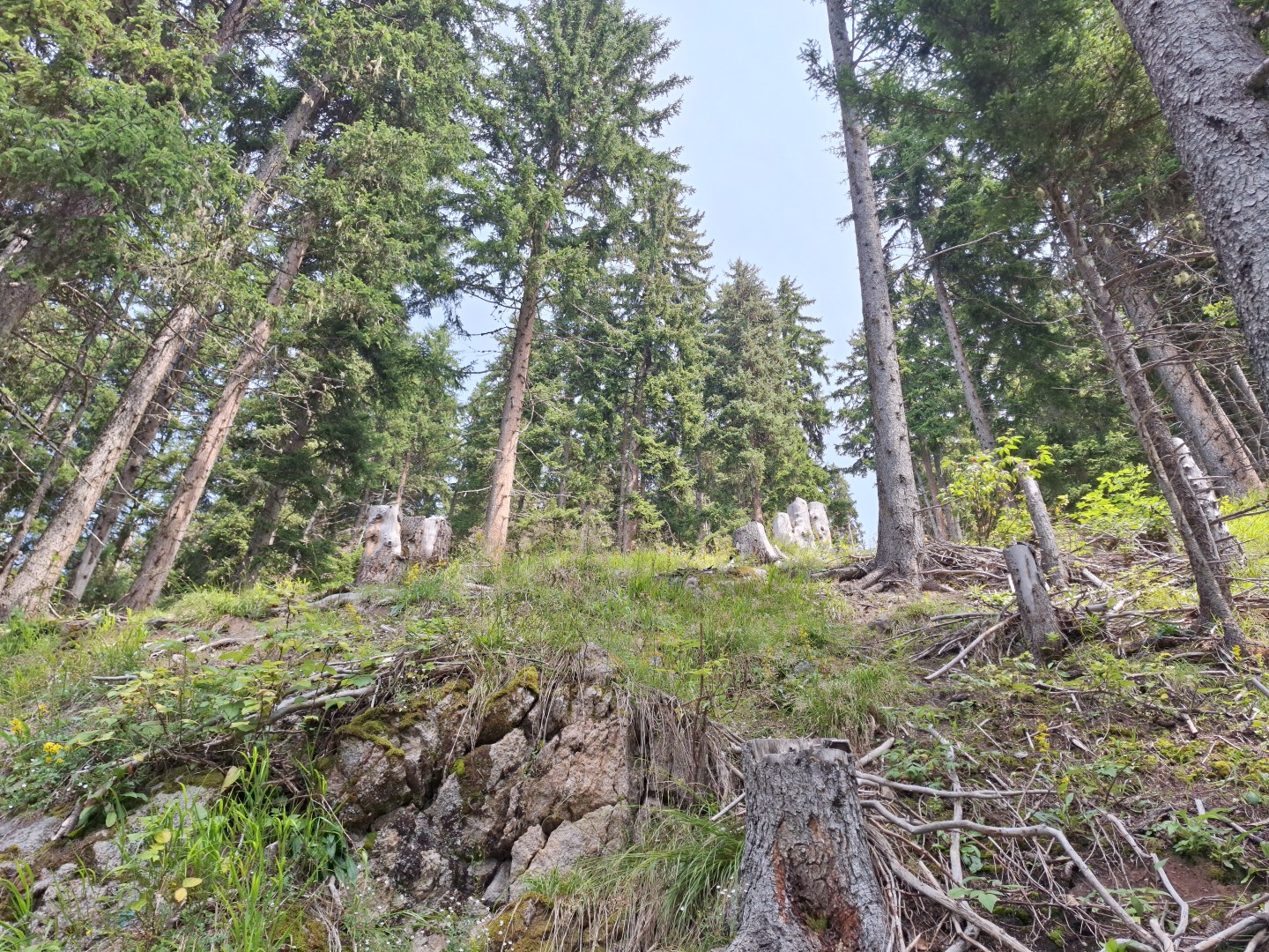 • Verjüngungseinleitung ist aufgrund des hohen Wilddrucks schwierig zu beurteilen. Das stellenweise dominierende Reitgras wird klar als limitierend eingeschätzt. Die übrige Schlagflora wird als verzögernd und nicht als verhindernd beurteilt.