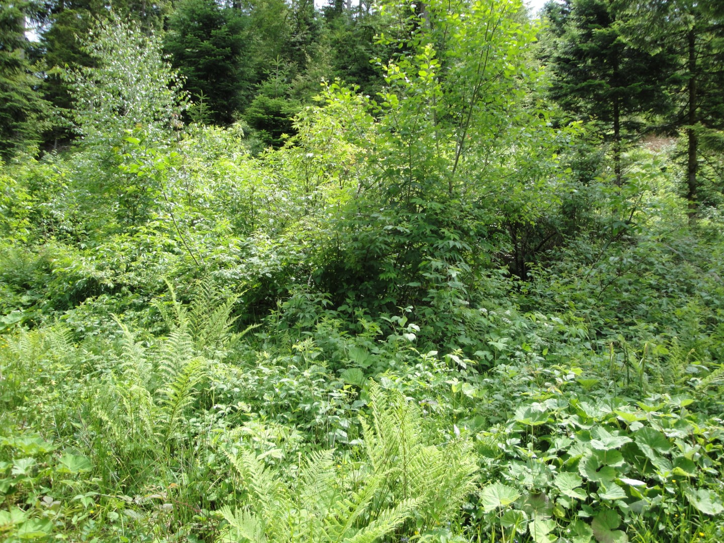 Im nordwestlichen Teil wurde ein Holzschlag ausgeführt (Durchforstung abtrieb) ca. 70m3. Der Abtrieb ist aus waldbaulicher Sicht nicht ganz verständlich, keine Verjüngung, Brombeeren. Auf der übrigen Fläche währe eine Pflege dringend notwendig. Vorwüchse entfernen und Weide zurückschneiden.